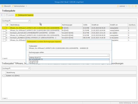 Bereits erstellte Treiberpakete können bei Bedarf in andere Rechnergruppen übernommen werden. Dies erleichtert die Wiederverwendung bewährter Konfigurationen und spart Zeit bei der Einrichtung neuer Gruppen.