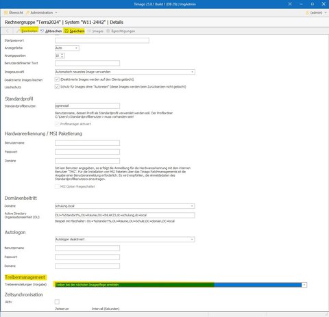 - Beim Ablegen des Images erscheint nun der zusätzliche Menüpunkt „Treibermanagement“.