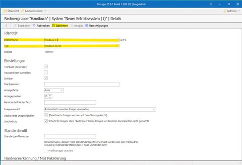 Ein Linksklick auf den Namen des Betriebssystems öffnet das zugehörige Stammdatenblatt, in dem Sie alle relevanten Informationen eintragen und Einstellungen vornehmen können.