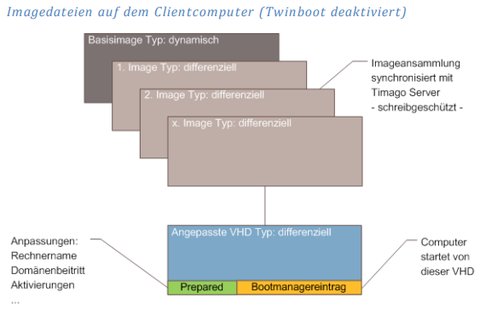 Wichtig: Damit Timago® im Twinboot-Modus starten kann, benötigt das System neben dem Grundimage mindestens ein differenzielles Image. Ohne dieses zusätzliche Image ist der Twinboot-Modus nicht funktionsfähig und kann daher nicht verwendet werden.